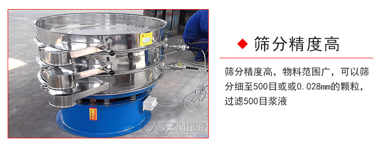 篩分精度良好,物料范圍廣,可以篩分細(xì)至500目或或0.028mm的顆粒,過濾500目漿液;