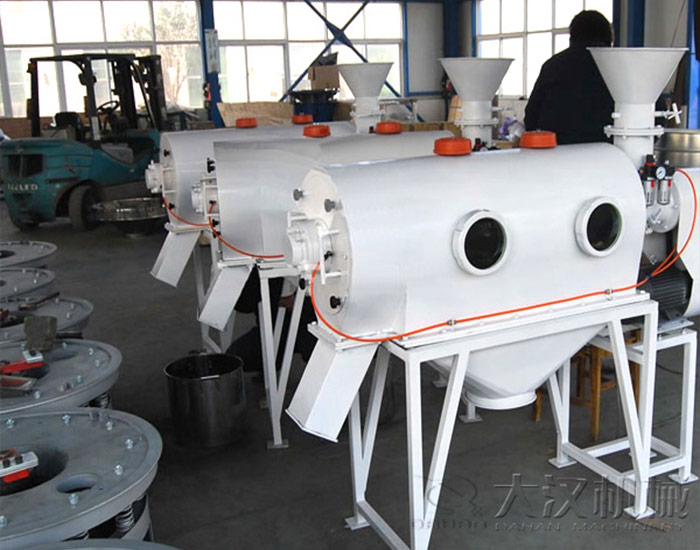 氣旋篩是將篩網(wǎng)放置在篩體內(nèi)部,麥芽粉通過螺旋輸送系統(tǒng)后,和氣流混合、霧化進入圓通內(nèi),通過網(wǎng)筒內(nèi)風(fēng)輪葉片使麥芽粉同時收到離心力和旋風(fēng)推進力,從而迫使麥芽粉噴射過網(wǎng),由細(xì)料排出口排出,不能過網(wǎng)的則沿筒壁從粗料排口排出,完成篩分工作。氣旋篩的體積非常小,質(zhì)量比較輕,運行時平穩(wěn)無振動、無噪音、密封性較好,不會有粉塵的溢散,造成空氣的污染,同時也不會有污染物進入,造成物料的不干凈,非常的適合篩分麥芽粉。