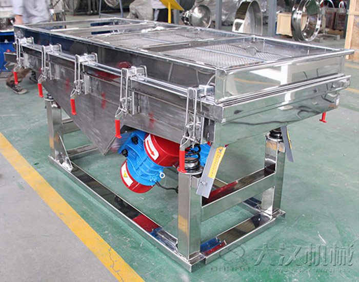 不銹鋼直線振動篩是采用不銹鋼結(jié)構(gòu),利用振動作為激振源,麥芽粉在篩網(wǎng)上被拋起來,像前作直線運動,通過多層篩網(wǎng)篩分出篩上物和篩下物,分別排出完成篩分工作。直線振動篩的篩機多能安裝6層篩網(wǎng),可以篩分出不同規(guī)格的麥芽粉。并且振動篩耗能低,產(chǎn)量大,結(jié)構(gòu)簡單,能對麥芽粉進行大量篩分。直線振動篩全封閉的結(jié)構(gòu)也可以防止粉塵溢散,導(dǎo)致環(huán)境污染,是生產(chǎn)的標(biāo)配。