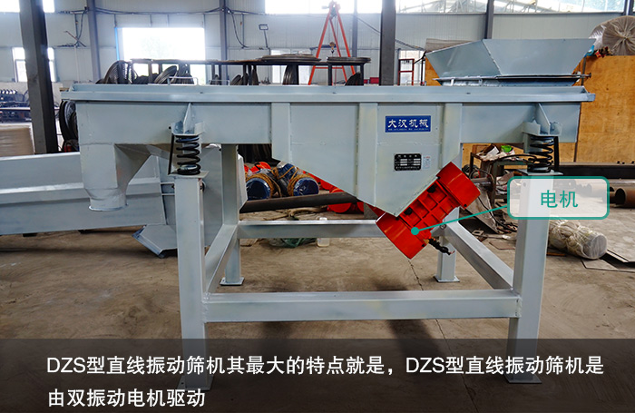 DZS型直線振動篩機其大的特點就是,DZS型直線振動篩機是由雙振動電機驅動,可兩臺振動電機走同步的或反向運動,此外DZS型直線振動篩機是采全封閉結構,無粉塵溢散,可改善其工作環境,能夠符合環要求等。