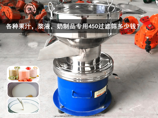 對于各種果汁,漿液,奶制品等物料都有一個特點(diǎn),其粘性較大為:粘稠物料所以其篩分,需要選用專用的過濾篩。那么對于各種果汁,漿液,奶制品的450過濾篩多少錢呢?