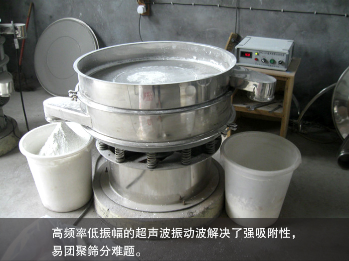 超聲波震動篩 是旋振篩的一種衍生產品,是將超聲波控制器于旋振篩有機結合在一起,在篩網上面疊加一個高頻率低振幅的超聲波振動波,超微細粉體接受巨大的超聲波加速,使篩面上的物料始終保持懸浮狀態,從而仰制黏附,摩擦,平降,楔入等堵網因素,從而解決了強吸附性,易團聚,高靜電,高精細,高密度,輕比重等篩分難題,使超微細粉篩分不再成為難事,特別適合高品質,精細粉體的用使用。